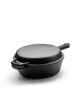 Set om djup traktörpanna i gjutjärn med en gjutjärns stekpanna