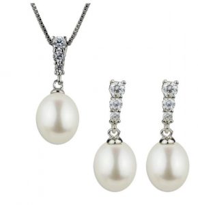 Halsband och örhängen i sötvattenspärlor